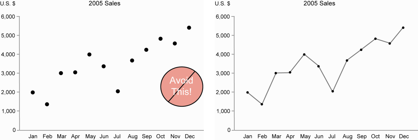 Singapore Management University ### 2019-04-28 (updated: 2022-04-21) --- # What will you learn from this lesson? .vlarge[ - Data visualisation design process - The Devil is in the data - Human perception and information processing - Components of a graph - Principles and practical guides for data visualisation design - Data visualisation critics framework ] ??? In this lesson, I am going to share with you the basic principles and best practices of Data Visualisation Design. The discussion consists of five sections. First, I will provide an overview of data visualisation design process. Next, by using appropriate examples, I will share with you the importance of data selection and preparation in building enlightening graphs. In section three, the principles of visual perception will be introduce. In section four, the practical guides of data visualisation design will be discussed. Lastly, a framework for evaluating and criticising data visualisation design will be introduced. --- ## Building Block of Visual Analytics .center[  ] ??? This slide shows the building block of visual analytics. Today, we will focus our attention on the lower left corner of the building block, namely Visual Perception. --- # Data visualisation design process .vlarge[ - Start with a clear message - Select the right data - Use the right visualisations - Express and explain - Review and seek feedback from experts and casual readers ] ??? In general, a data visualisation design process consists of five major steps. --- # DataViz design process: Start with a clear message .center[  ] ??? In data visualisation design, it is important to be clear and explicit about what you want to achieve. Is it to explore some data, to convey an inferential analysis, to deliver a message, convince an audience, or support a decision? It may be a mixture of these—for example, even seemingly simple exploratory plots should serve some (perhaps implicit) decision (e.g., on how to explore further). Every graph, and, more generally, every communication, must be tailored to its specific purpose. --- # The Devil is in the Data  ??? Clean and tidy data are needed to build truthful data visualisation. But beside clean and tidy data, there are at least two considerations related to data require our attention. --- ## Numbers Worth Knowing .vlarge[ + Not all numerical data are continuous!] .center[  ] ??? First, it is important to note that not all numerical data are continuous. There are two types of numerical data. They are discrete and continuous. Discrete data can only assume specific values that you cannot subdivide. Typically, you count discrete values, and the results are in frequency count or in per cent . For example, display size should be classified as discrete (i.e. nominal or ordinal scales) instead of continuous., a mean of 15.81 in monitor is no meaning. Continuous data can assume any numeric value and can be meaningfully split into smaller parts. Consequently, they have valid fractional and decimal values. In fact, continuous variables have an infinite number of potential values between any two points. Generally, you measure them using a scale. --- ## Visualising the Right Data .vlarge[ + There are more than one way to present the data. ] .center[  ] ??? Secondly, there are more than one way to present the data. It is not unusual by presenting derived data reveal more aha surprises than the raw data. --- ## Visualising the Right Data .large[ + Derived values reveal more interesting patterns than absolute values. ] .pull-left[  ] -- .pull-right[  ] ??? The data visualisation on the left is a dual y-axis bar graph. The y-axis on the left shows revenue and the y-axis on right shows customers. From the graph, you can see how both the monthly revenue and number of customers are growing for this company. The data visualisation on the right shows the differences between the month-to-month % change of revenue and customers. By showing the data in percent change, the data visualisation allows us to discover that the month-to-month customers and revenue growth rate are reducing in the financial year. --- ## Visualising the Right Data .large[ + Derived values reveal more interesting patterns than absolute values. ] .center[  ] ??? By deriving revenue per customer and plot them as a line graph, the data visualisation allows us to tell a more compelling data story. In the figure, we can see that revenue per customer has decreased significantly during the year, even though the monthly revenue has risen steadily. The important take away from this case study is that select the right data to prepare the data visualisation and be mindful that the raw data might not always be the right choice. --- ## Graphical Integrity: Show Me the Truth .center[  .small[ Source: [Department of Statistics](https://www.singstat.gov.sg/modules/infographics/singapore-international-trade) ]] ??? Let us take a good look at the data visualisation on the slide. Can you spot any graphical integrity issue? Yes, the issue of inconsistent data aggregation. On the figure, the major trading partners are at the country level except EU. --- ## Graphical Integrity: Show Me the Truth .large[ - Snapshot can be misleading!] .pull-left[  ] -- .pull-right[  ] .small[ Source: Cairo, Alberto (2019) **How Charts Lie**, W.W. Norton & Company, USA. pg 168. ] ??? Donald Trump liked to claim that the job market was a "disaster" before he was sworn in but recovered right after, and he used charts that cropped the horizontal axis in a convenient place. But if we go back in time and mark the point when Trump became president, we'll see that there's no remarkable change in the trajectory and slope of the line. Jobs began recovering in 2010. --- ## Graphical Integrity: Show Me the Truth .vlarge[ - Do not miss-out what had happened in between.] .pull-left[  ] -- .pull-right[  ] --- # Human Perception and Information Processing .center[  ] --- ## Pre-attentive Processing .vlarge[ - A limited set of