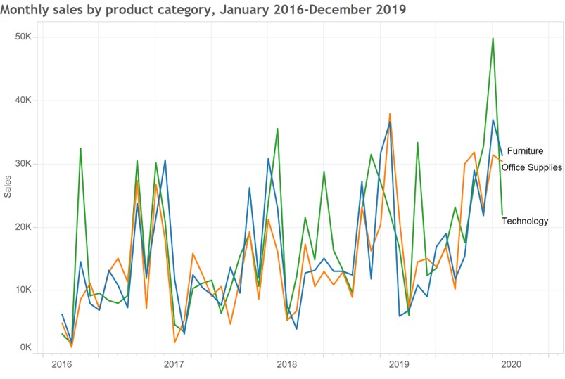 Singapore Management Uniiversity ] .date[ ### 2020/02/17 (updated: 2022-05-13) ] --- # What will you learn from this lesson? .vlarge[ - Characteristics of time-series data - Classic ways of graphing time - Time-series patterns - Time-series data visualization - Interactive techniques for time-series data visualisation ] ??? In this lesson, I am going to share with you methods and best practice for visualising and analysing time-series data. It is organised into five main sections. First, we will examine different format of time series data. This is followed by a review of selected inspiring data visualisation for revealing time series patterns. In section three, we will examine different time-series patterns graphically. In section 4, I will introduce selected not so commonly used time-series data visualisation techniques. Lastly, in section 5, we will examine how interactivity and animation can be used to enhance visual time-series data discovery. --- ## Characteristics of time-series data ### A typical time-series data table .center[ ] ??? The data table shows a typical time-series data. The first column contains the time series values in calender month and year. It is important to note that the values must not be in character data type. The next four columns are called time-series variables. They can be categorical or numeric data type. --- ## Characteristics of time-series data ### Not so friendly time-series data .center[ ] ??? The data table in this slide is an example of time-series data which was not organised in machine understandable time-series manner. As shown on the slide earlier, a machine understandable time-series data must be organised in rows and columns whereby of of the column must contain the date/time values. In this example, the data need to be reformatted before they can be visualised. --- ## Characteristics of time-series data ### Not so friendly time-series data .center[ ] ??? This slide shows a typical reporting table with many formatting features such as column sub-total, row sub-total, spacing, rows separators etc. Again, this table need to be tidied before it can be used to build tiem-series visualisation effectively. --- ## Characteristics of time-series data ### Not so friendly time-series data .center[ ] ??? The table on the slide is another good example of not so friendly time-series data set. As you can see, the temporal field was splitted into three columns and the Year and Day fields are in numeric and Month field is in character. Also note that many rows for Year and Month fields were empty. In view of this, this data also need to be tidied before it can be used to build data visualisation. --- ## A short visual history of time-series graphs ### Playfair’s Commercial and Political Atlas (1786) .center[ ] .small[Reference: https://en.wikipedia.org/wiki/William_Playfair] ??? In this section, I am going share with you five very well designed time-series data visualisation and hope they inspired you. The first data visualisation is Playfair’s Commercial and Political Atlas (1786). This is not a typical time-series line graph. As you can see, the author put in conscious effort to shade the space between the import and export curve in order to reveal time interval with trade deficit and time interval with trade surplus. --- ## A short visual history of time-series graphs ### Playfair’s Chewing at One View Chart (1821) .center[ ] .small[Reference: https://wam.fandom.com/wiki/William_Playfair%27s_Price_of_Wheat] ??? This data visualisation is also a creation of William Playfair. It is make up of two graphical methods namely bar chart and line graph. Bar chart was used to show the price trend of the quarter of wheat and line graph was used to reveal wage trends of labour by the week. --- ## A short visual history of time-series graphs ### Bump Chart shows rank of the most populous cities at each census: 1790-1890 .center[ ] .small[An interactive version here http://vallandingham.me/census_bump/] ??? This data visualisation shows rank of the most populous cities at each census 1790-1890. Instead of using lines, this data visualisation using ellipses. The more recent times were on the left of the data visualisation and the earlier times were on the right. Note that the original data visualisation was static. --- ## A short visual history of time-series graphs ### Multiple charts showing records of the Weather in New York City for December, 1912. .center[ ] ??? This data visualisation shows record of the Weather in New York City for December, 1912. The bold line indicates temperature in degrees Fahrenheit. The light solid line shows wind velocity in miles per hour. The dotted line depicts relative humidity in percentage from readings taken at 8 a.m. and 8 p.m. Arrows portray the prevailing direction of the wind. Initials at the base of the chart show the weather conditions as follows: S, clear; PC, partly cloudy; C, cloudy; R, rain; Sn, snow. --- ## Time-series graph that change public understading ### The Hockey Stick Chart .center[ ] .small[ Reference: Michael E. Mann, Raymond S. Bradley, Malcolm K. Hughes (1999) ["Northern hemisphere temperatures during the past millennium: Inferences, uncertainties, and limitations"](https://agupubs.onlinelibrary.wiley.com/doi/abs/10.1029/1999GL900070). *Geophysical Research Letters*, Vol. 26, No. pp. 759-762. ] ??? Hockey stick graphs present the global or hemispherical mean temperature record of the past 500 to 2000 years as shown by quantitative climate reconstructions based on climate proxy records. These reconstructions have consistently shown a slow long term cooling trend changing into relatively rapid warming in the 20th century, with the instrumental temperature record by 2000 exceeding earlier temperatures. It is a good example of how data visualisation can be used to create global awareness of rapid warming in the 20th century. --- # Time-series data patterns .vlarge[ - Trend - Variability - Rate of change -